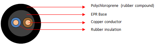 Insulation (Outer sheath/Cores): Black Neoprene rubber/Colored neoprene rubber